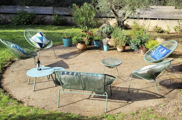 barbecue – Petit Salon de jardin : 2 fauteuils – 1 banquette – 1 table basse – 5 fauteuils –